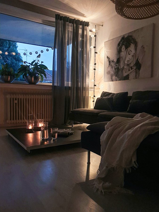 Wohnzimmer, Couch, Couchtisch, Kerze, Kerzen, Kerzenlicht, Kerzenschein, Lichterkette, Söderhamn, Livingroom, Interior, Interieur, Sofa, Sofaecke