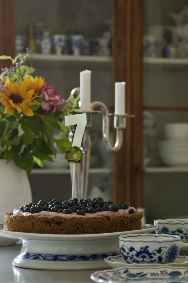 Kuchen, Blumen, Juli, Julikind, Blaubeeren