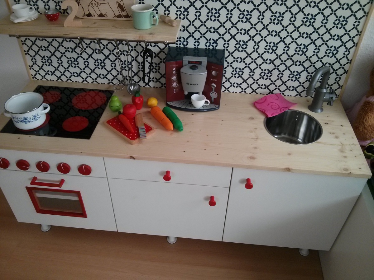 Kinderküche, Detail Kinderküche, Kinderküche DIY, Alles selbstgmacht, Ausschnitt Kinderzimmer, bastelidee diy