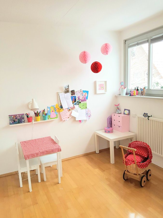 Noch steht hier ein kleiner Tisch mit zwei Stühlchen, aber die Tage sind gezählt. Dann ziehen Tisch und Stühlchen rüber zum kleinen Jungen und das große Mädchen bekommt ihren Schreibtisch. Oooohh....