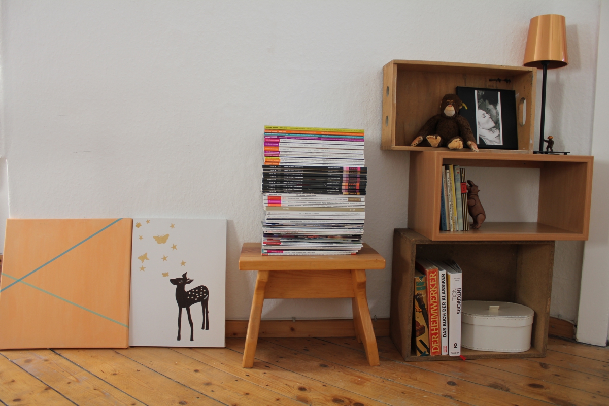 Wir hatten so viele Holzkisten, dass wir uns überlegt haben ein paar miteinander bekannt zu machen. Entstanden ist ein Mini-Regal