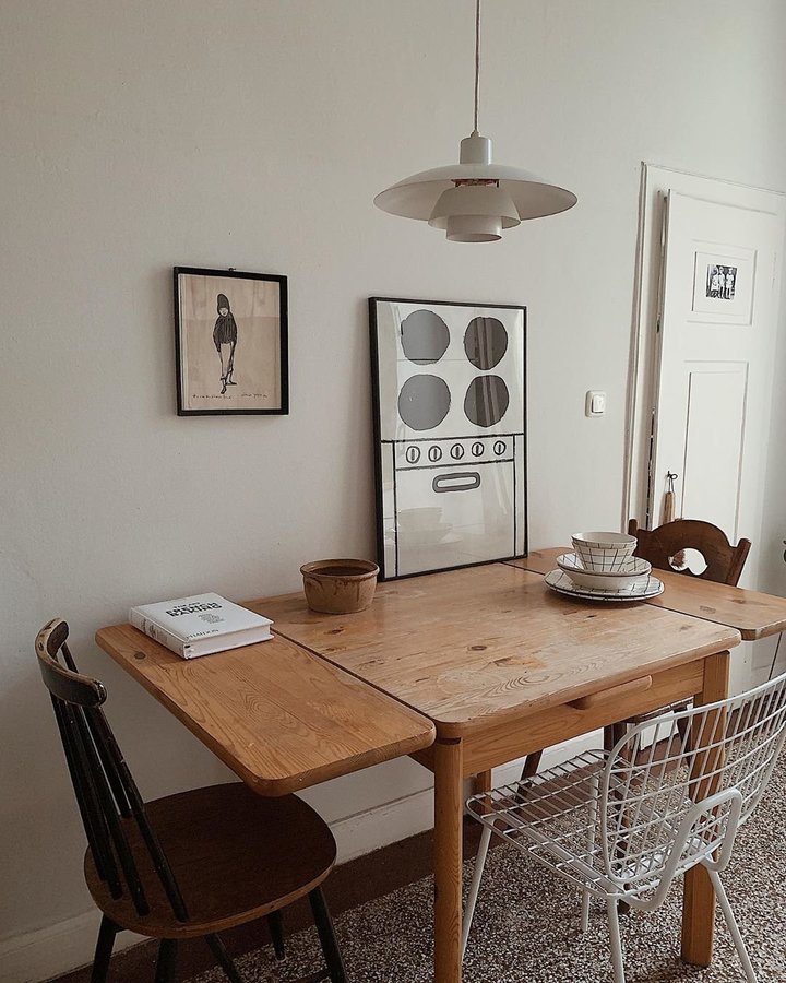 Küche, Küchentisch, Esstisch, Holztisch, Hängeleuchte, Stuhlmix, Küchenstühle, Terrazzo