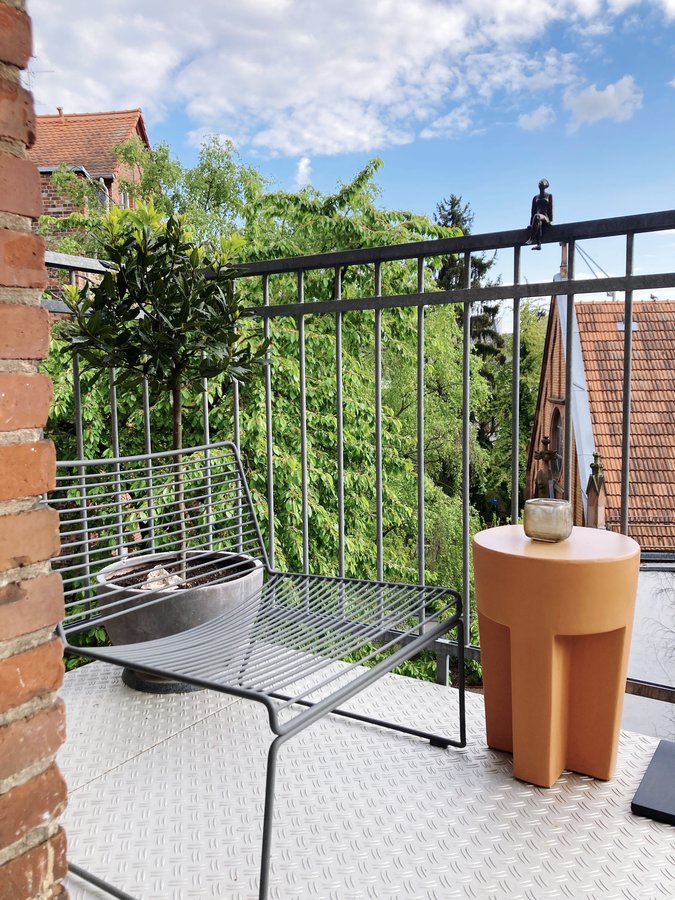 Balkon, Balkonpflanzen, Keramik, Dekoidee, Frühling, Altbau, Bronze, Skulptur, Teelicht
