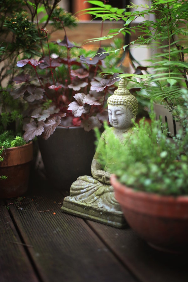 Terasse, Pflanzen, Buddha