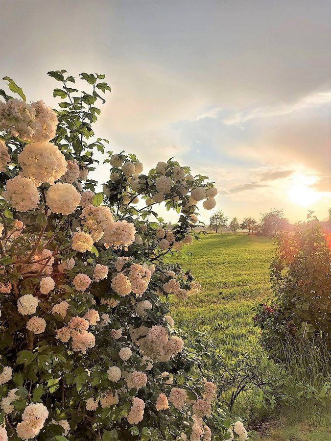 Garten, Schneeball, Aussicht, Abendstimmung, Abendsonne, Gewitter