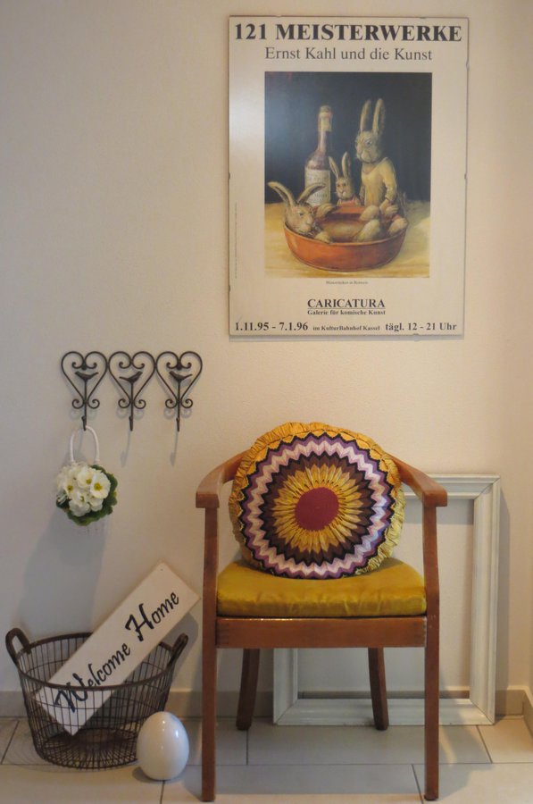 Ostern, Häkelkissen, Alter Stuhl, Senf, Braun, Grün, Ei