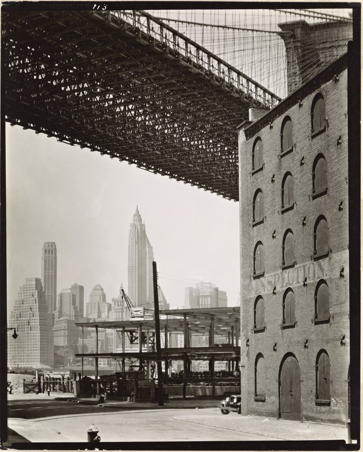 kostenlose Kunst: vintage Photo: Brooklyn Bridge, Water and Dock Streets, looking southwest, Brooklyn.