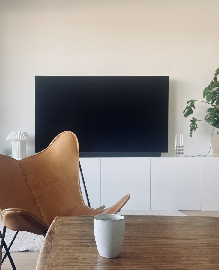 Kaffee, Wohnzimmer, Fernseher, Lowboard, Butterflychair, Teak, Couchtisch