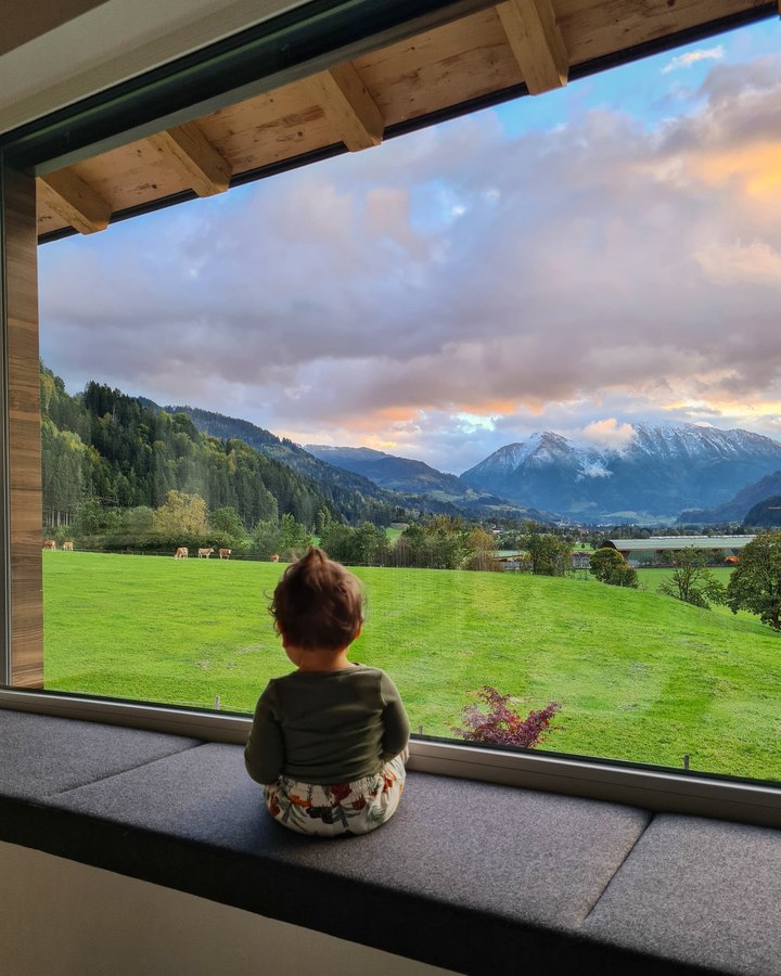Berge, Schlafzimmer, Aussicht, Baby, Sonnenuntergang