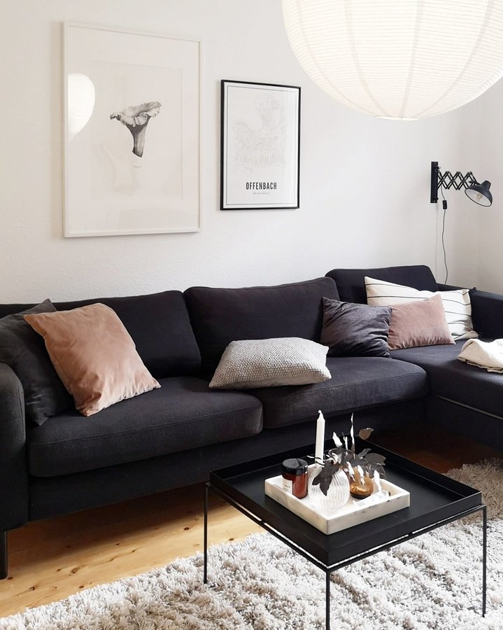 Wohnzimmer, Sofa, Wohnzimmertisch, Teppich, Kissen, Wandgestaltung