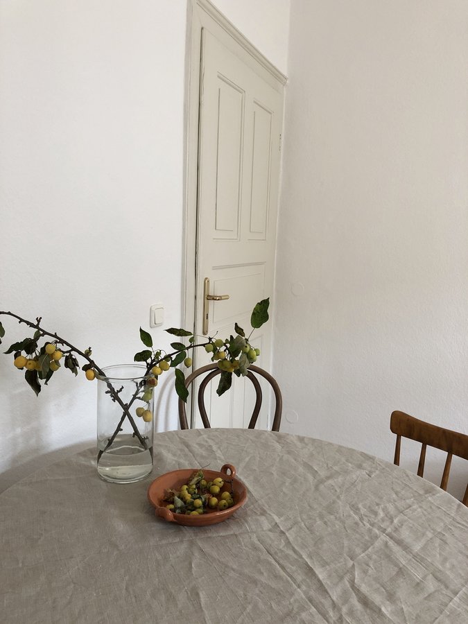 Herbstdeko, Herbststimmung, Leinentischdecke, Esstisch, Stuhlmix, Altbau, Altbauwohnung, minimalitisch, Gemütlich