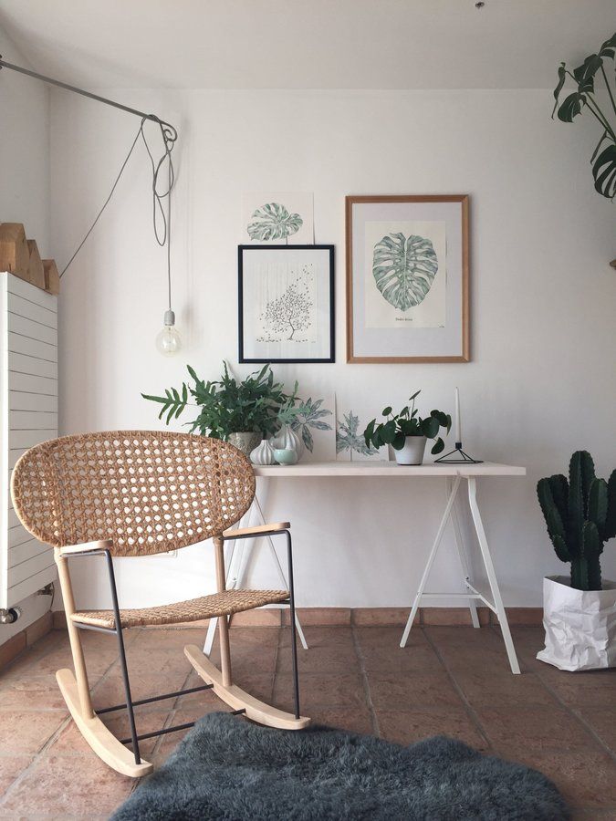 Wohnzimmer, Diy, aquarelle, Zimmerpflanzen, Schaukelstuhl
