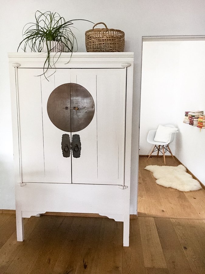 Asiatischer Hochzeitsschrank, vitra chair, korb Depot