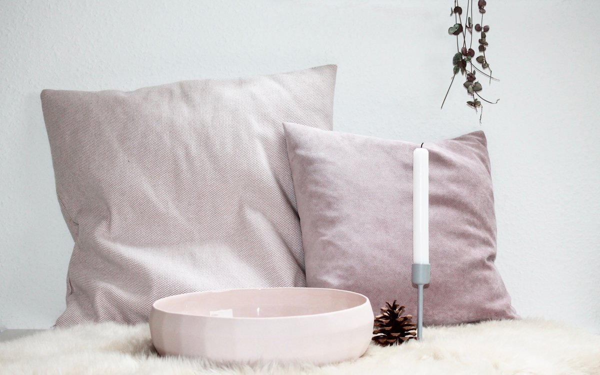 Fell, Porzellanschale, Kerzenständer, Kissen, Rosa