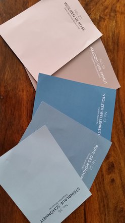 Die neue Farbkombi in blaugrau-tönen, passt gut zum Tisch. Endlich stört er mich nichtmehr so