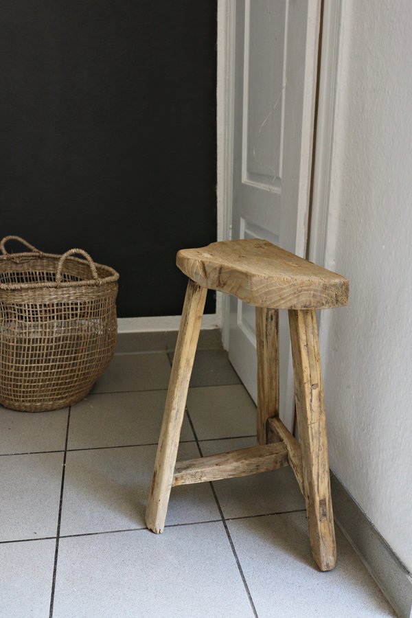 Hocker, Küche, Fliesen, Korb, Graue Wand, Weiß, Altbau, Holz, Holzhocker