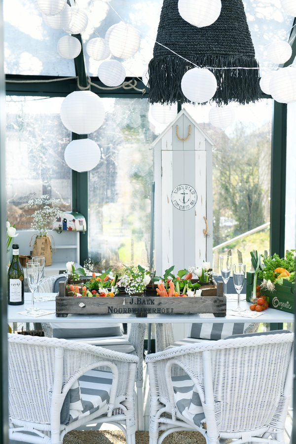 gartenhuas, Gewächshaus, Maritim, strefien, Lampions, Anker, Gemüse, Rattansessel, Ikea, Garten