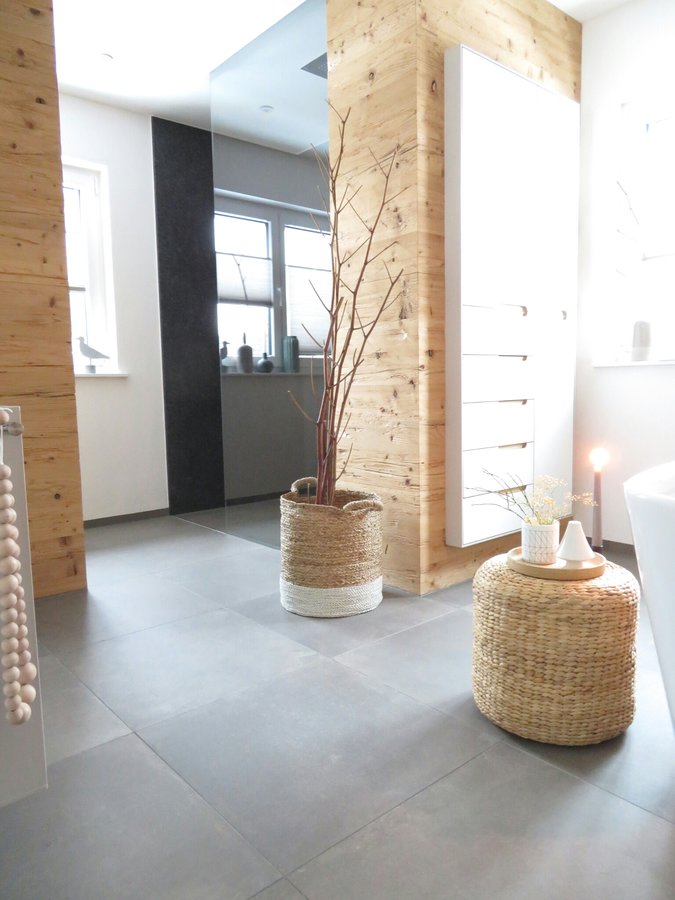 Bad, Badezimmer, Altholzwand, Eames, Einbauschrank