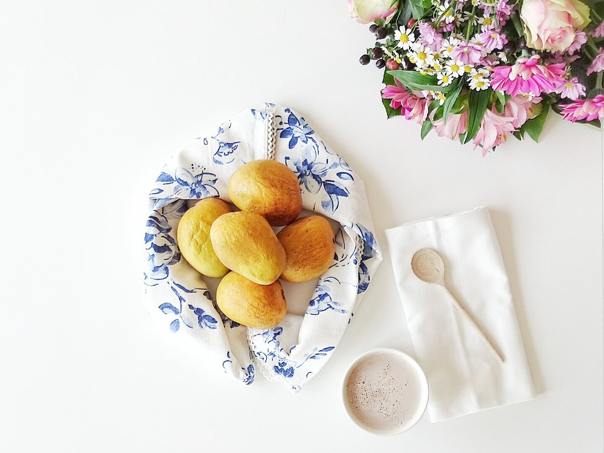 Frühstück, Kakao, Esstisch, Morgens, Blumen, Frühling, Heimtextilien, Obst