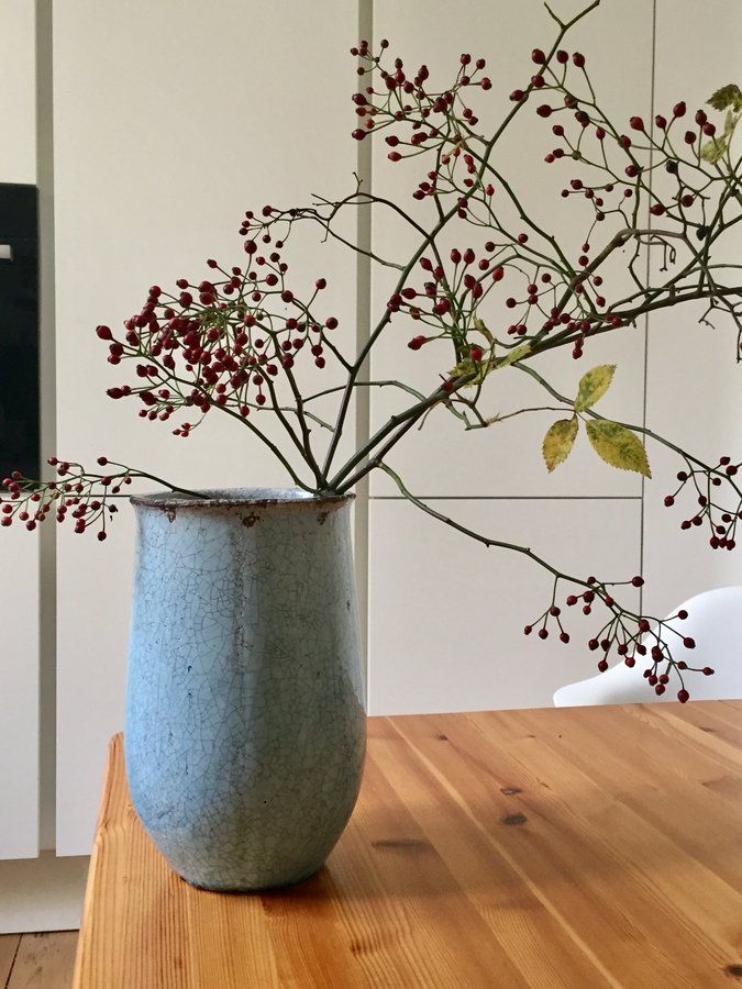 blaue Vase, Küche, Hagebutten