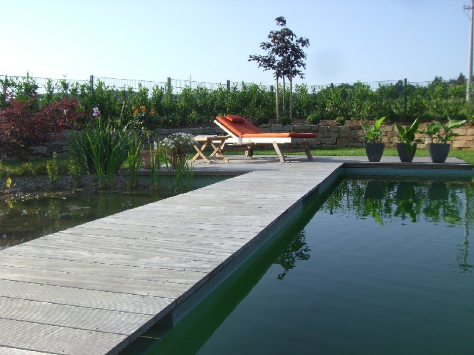 teich schwimmteich, Garten, Holzsteg