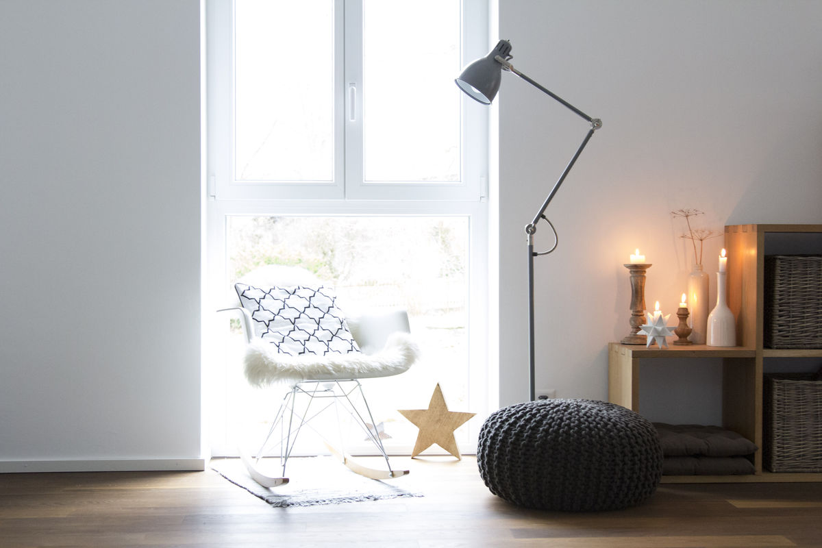 Dekofell, Holzstern, Dekokissen, Pouf, Eames Rocking Chair
