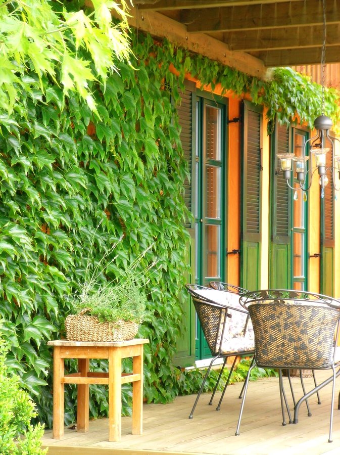 Gartenmöbel Royal Garden, Holzdeck, Wein, Holzhocker, romatischer Garten, Holzläden, Lampe Ikea