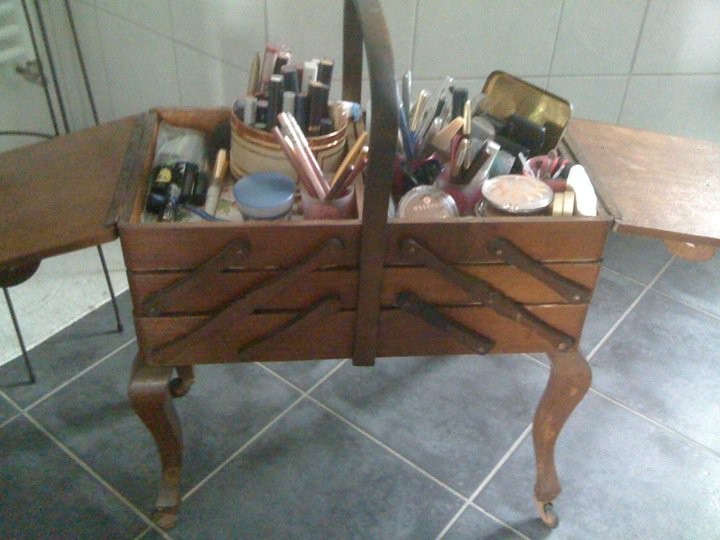 weil ich nicht so gut nähen kann, wurde mein nähkästchen aus omas zeiten kurzerhand zum schminkkästchen umgewandelt