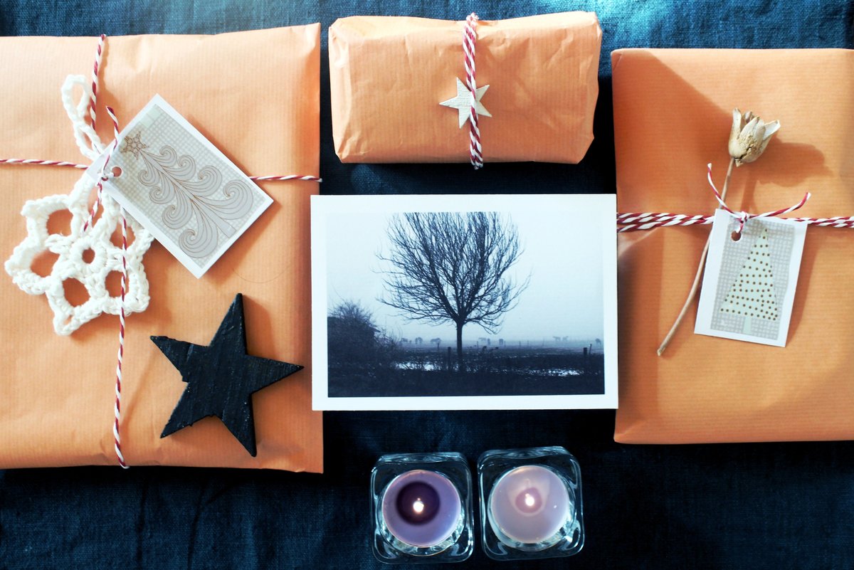 Wichtel, Wichteln, Wichteln 2022, SolebichWichteln, Wichtelgeschenk, Sterne, Teelicht, Karte, Orange, Geschenkpapier
