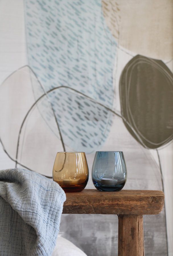 Altholzhocker, Windlichter, Kunst, Leinendecke