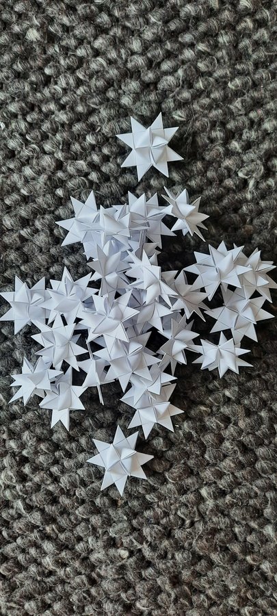 Meine liebe Schwiegermutter hat mir soeben selbst gebastelte Fröbelsterne vorbeigebracht .😊