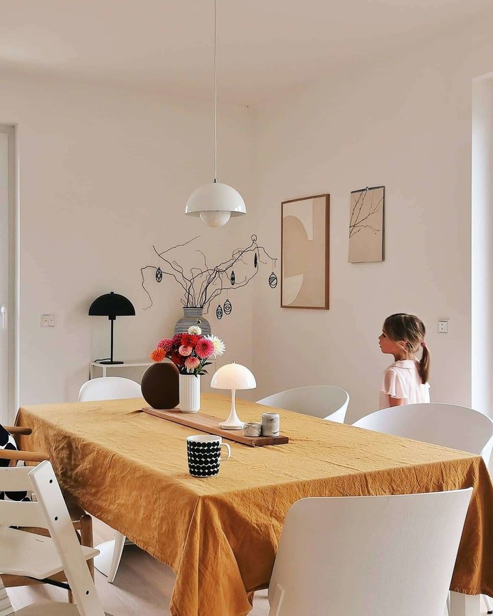 Herbstdeko, Esstisch, Wohnzimmer, Senft, Tischdecke, Lampen, Stühle