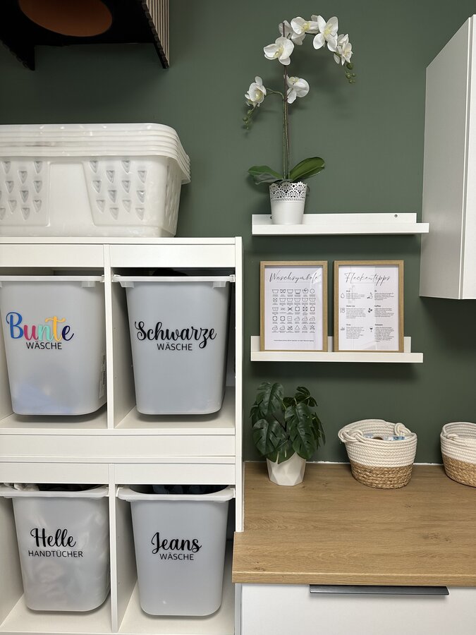 Hwr, Hauswirtschaftsraum, Ordnung, Poster, Bilderrahmen, Waschküche, Eiche, Einrichtungsidee, Einrichtungstipps, Aufbewahrung, Label, Beschriftung, Wäschekorb, Diy