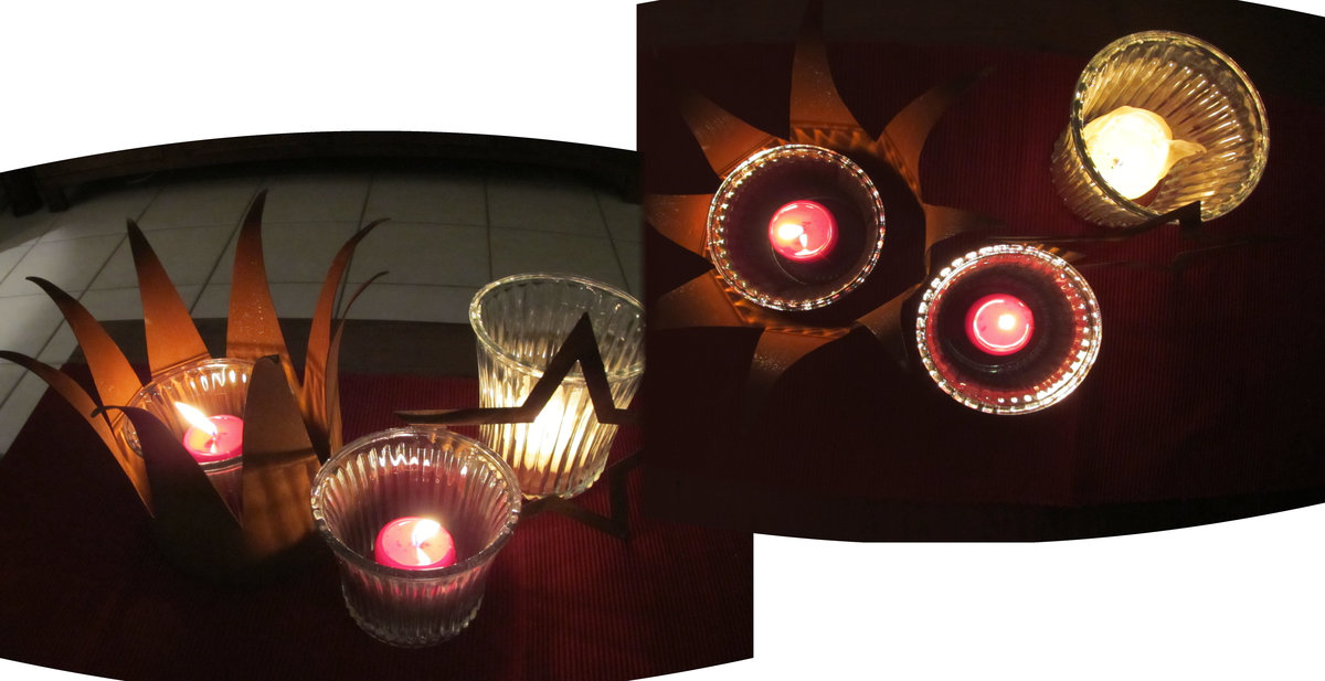 Mein lieber talentierter Nachbar hat mir dieses und noch weitere Metallkronen-Windlichter