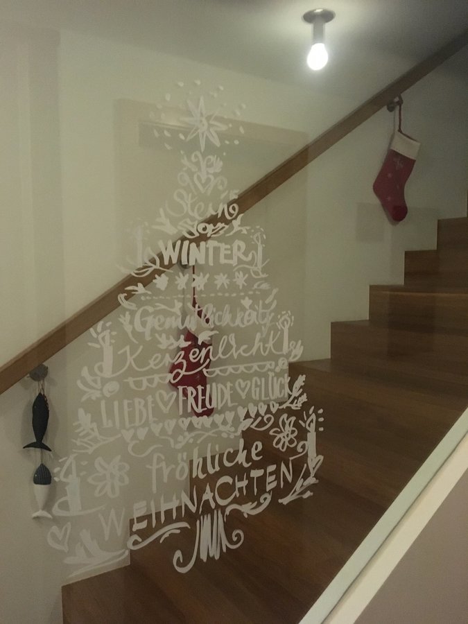 Flur, Glaswand, Treppe, Aufgang, Advent, Kreide, Dekoration, Nikolaus, Vorfreude