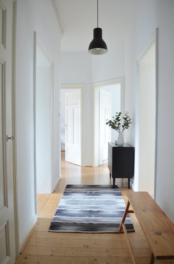 Flur, Teppich, schwarz weiß, Altbau, Dielenboden, Sitzbank