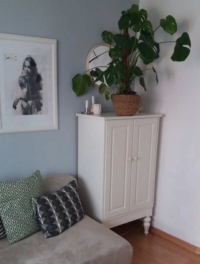 Schrank, Ikea, Wohnzimmer, Monstera, Sofa, Wandfarbe
