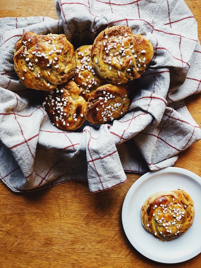 Zimtschnecken, Leinen, Sonntage, Holztisch, Gebäck