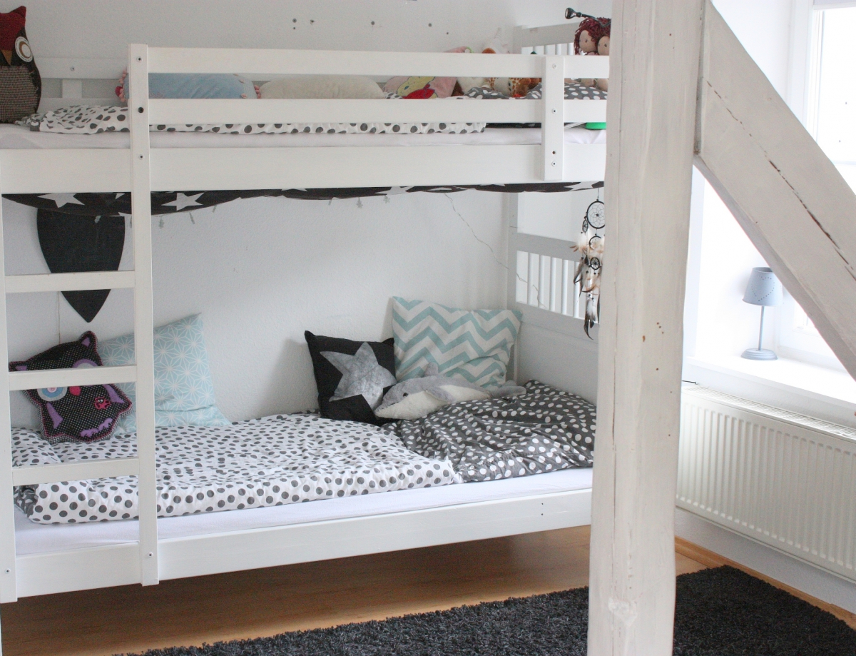 Jetzt haben unsere beiden Großen (11 und 8 Jahre) zusammen ein Zimmer und ein Etagenbett, vielleicht auch weil Mama es so wollte :wink☺️)