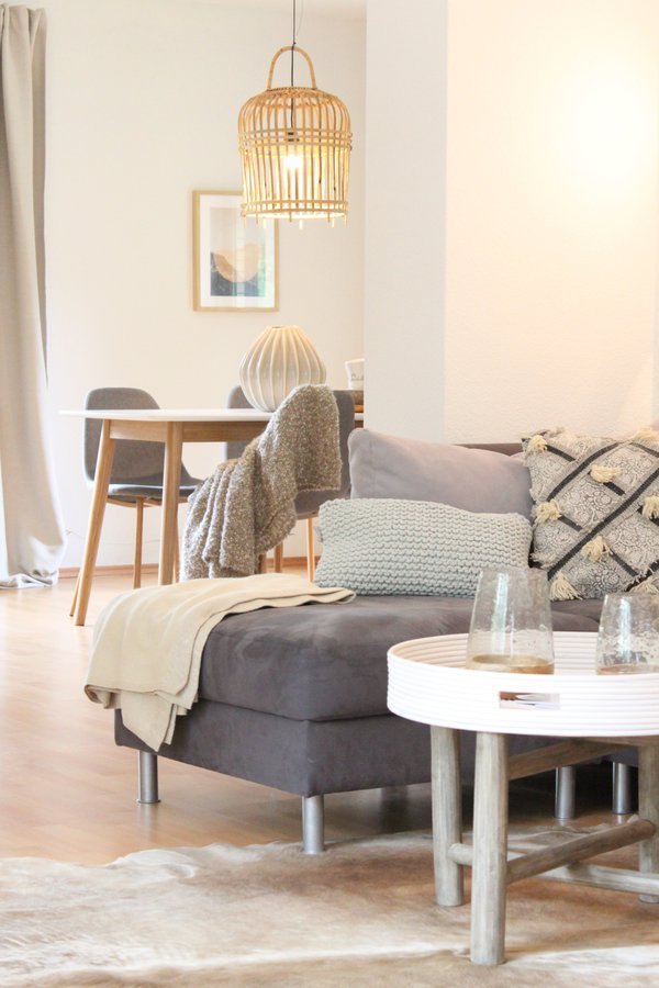 wohn essbereich, Sofa, Kissen, Bambus, Vase