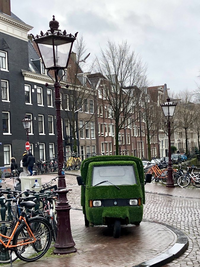 Nasskaltes Wetter in Amsterdam…brrrrr🥶ich glaub, da würde nicht mal der Mantel aus Kunstrasen helfen. Aber witzig aussehen tut’s…