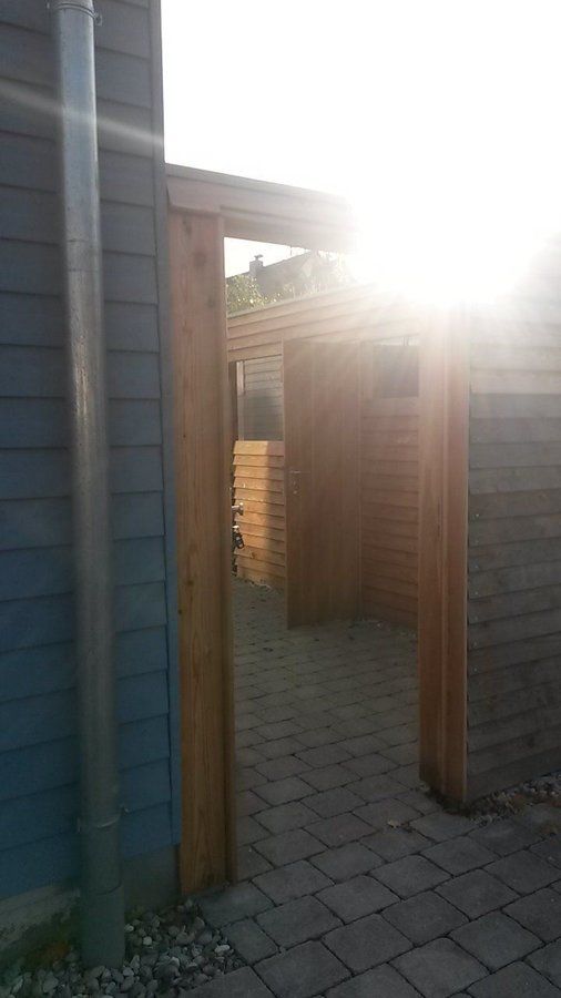 ... geht's in unseren Hof und man kann durch die Tür auf unser Gartenhäusle bzw -Schuppen schauen.
