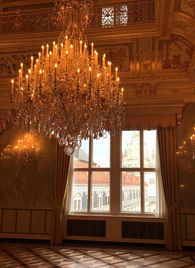 Nein, so leb ich nicht! 😉 Hier der im Krieg völlig zerstörte, vor wenigen Wochen aber wiedereröffnete „kleine Ballsaal“ des Dresdner Residenzschlosses.