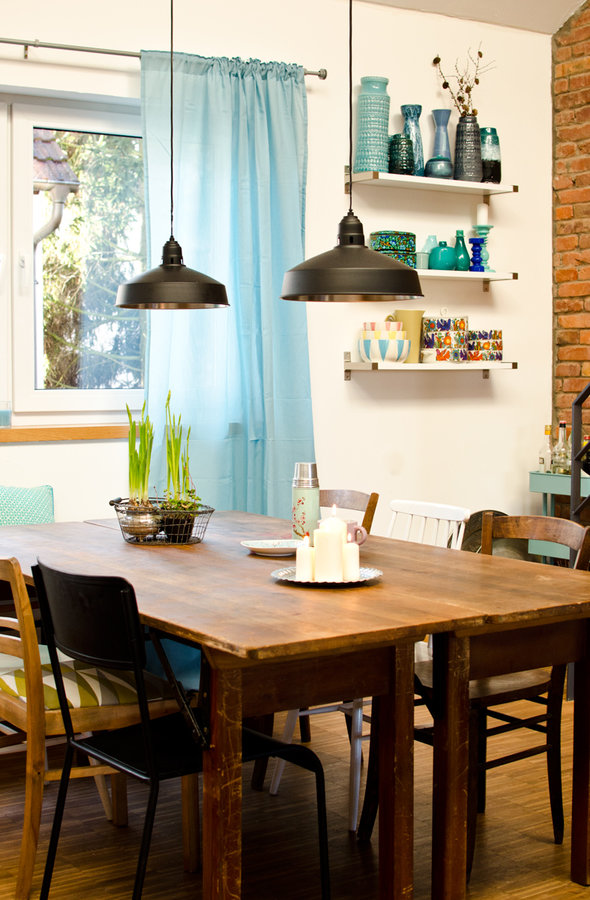 Industrielampen, Holztisch, Türkis, Vintage Esszimmer