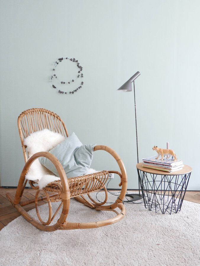 Rattan, rockingchair, Schaukelstuhl, Arbeitszimmer, Wandfarbe, Salbei