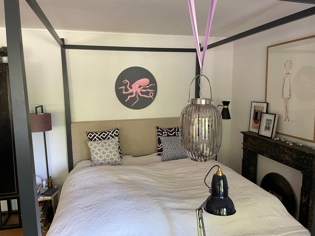 Neues "Wappentier" über'm Bett: Pussy, der Octopus (frisch aus dem Atelier: Acryl, Mamormehl, auf Leinwand)...