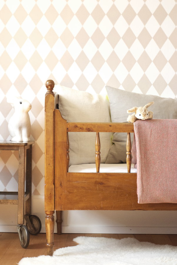 Vintage, Hase, Baby, Kindertapete, Babyzimmer, Gitterbett