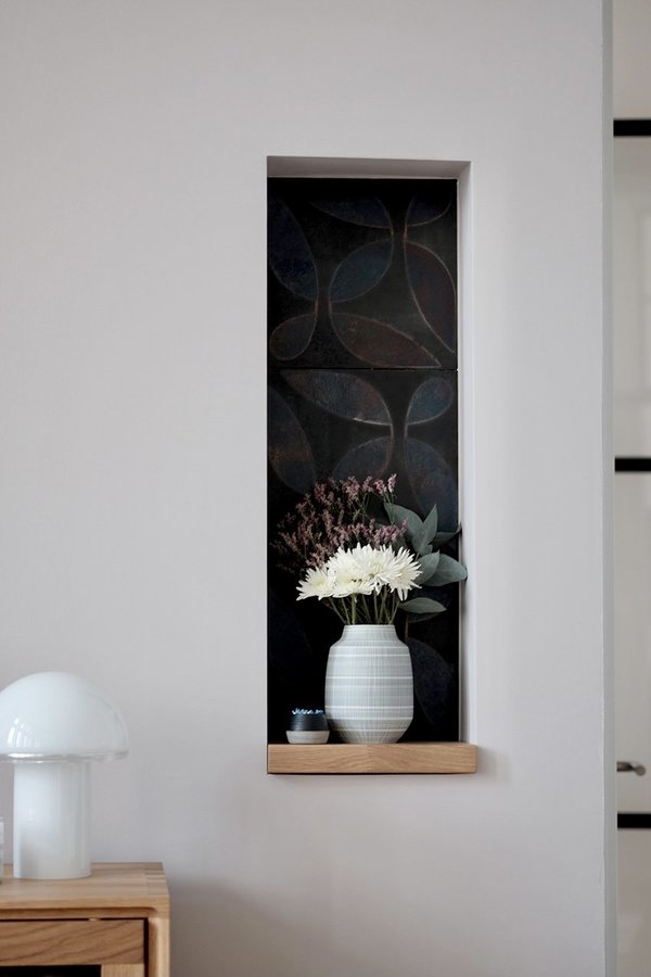 Wandnische, Fliesen, Peignoir, Glaslampe, astern