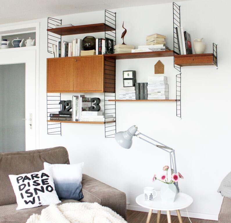 Nie hab ich's hinbekommen, ein Bücherregal schön zu gestalten. Und mo-na-te-lang wusste ich nicht, was tun mit dem eigentlich schönen String-Regal. Immer war da nur so'n bisschen Deko reingestellt, aber gut sah's irgendwie nicht aus. Und jetzt- tataaaa- denke ich, ist mir endlich beides gut gelungen! Dank vieler Inspirationen aus Zeitschriften, Büchern und dem Ikeakatalog... Ach, ich freu mich!
