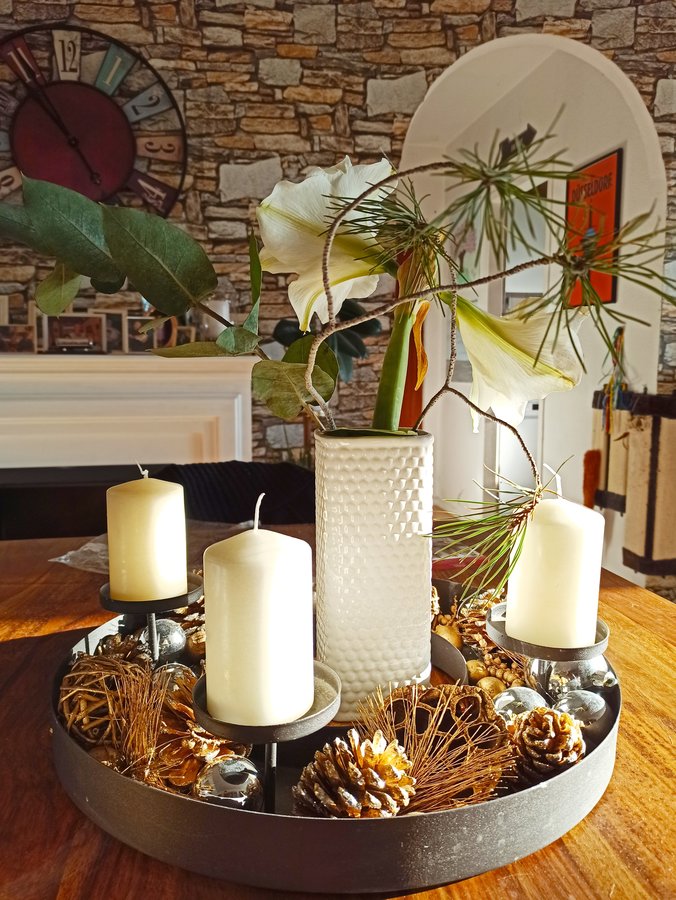 Esstisch, Advent, Adventskranz, Adventszeit, Amaryllis, Weiß, Rundbogen